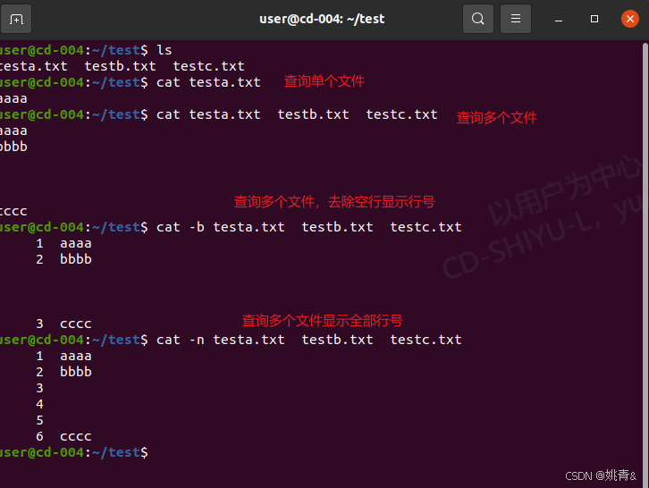 格式:cat [选项] 文本文件名称