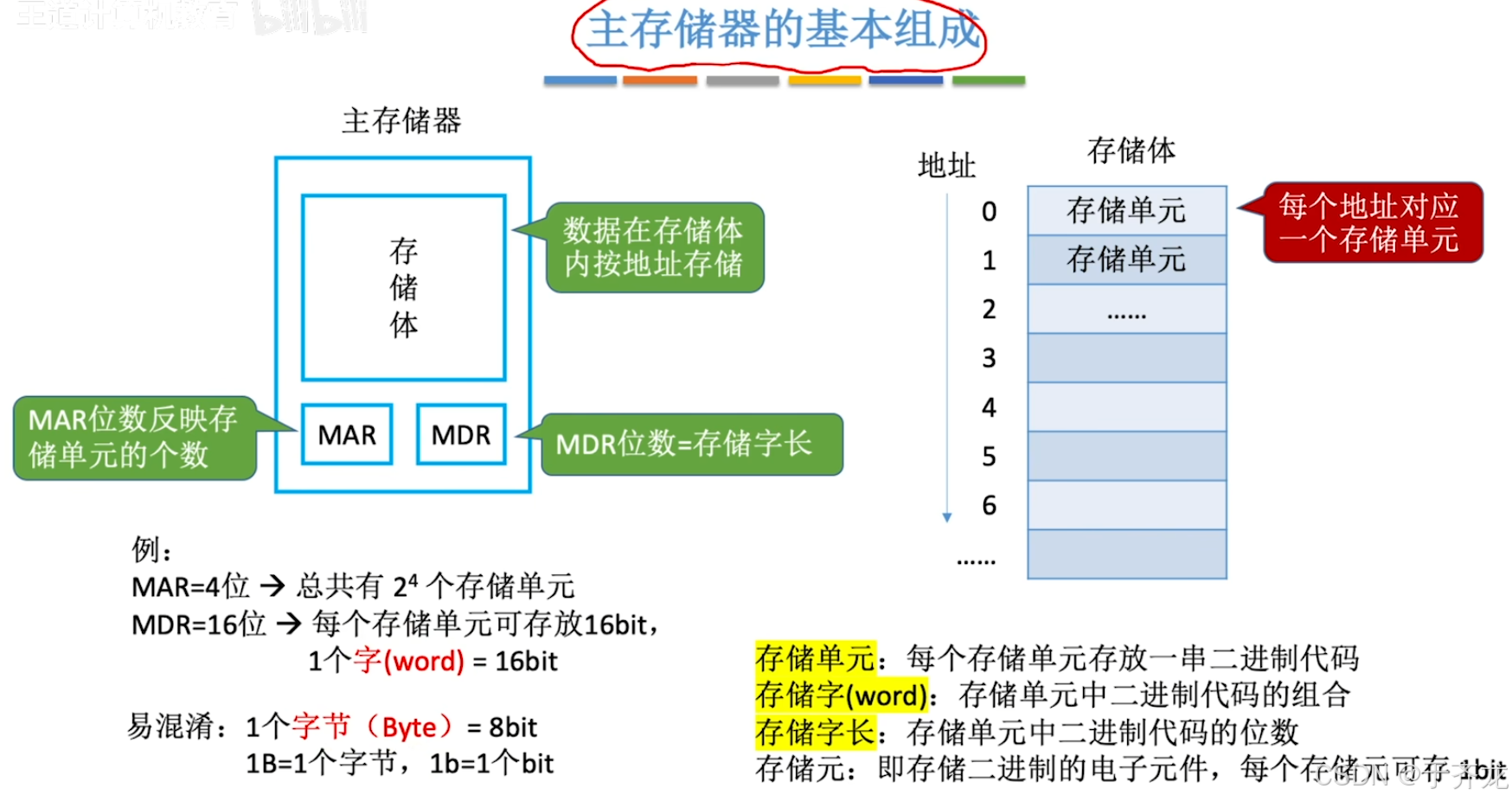 一个字(word) = MDR的位数个bit,一个字节(Byte) = 8bit