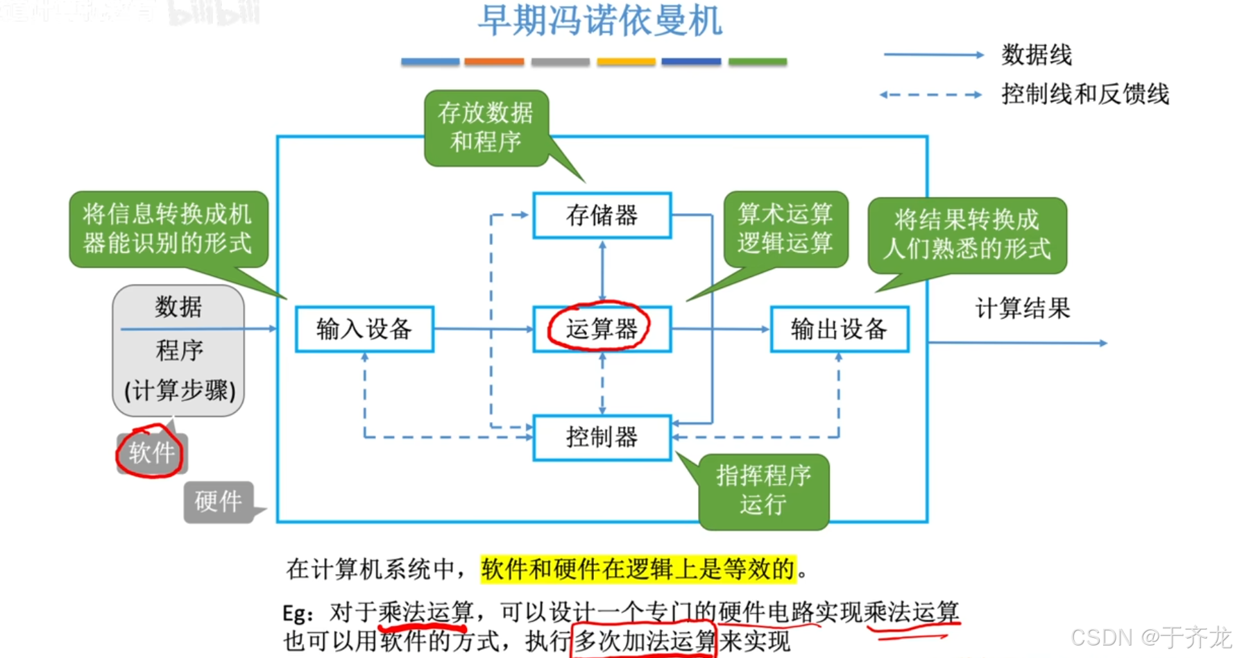 软件和硬件的逻辑功能等价性:同一个功能,既可以用硬件实现(性能高成本高),也可以用软件实现(性能低成本低)。
