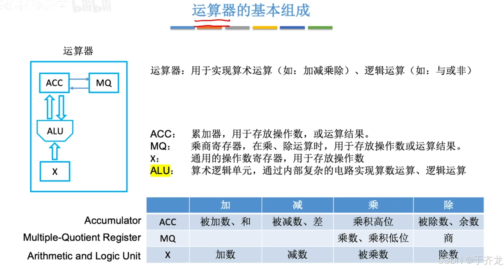 ACC、MQ、X是用来存放数据的,ALU是用来进行算数逻辑运算的。