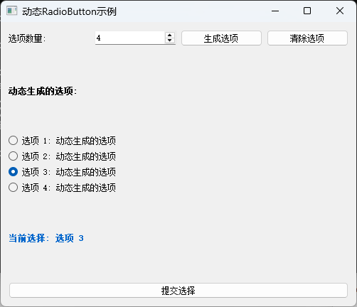 self.radio_option2 = QRadioButton("选项二")