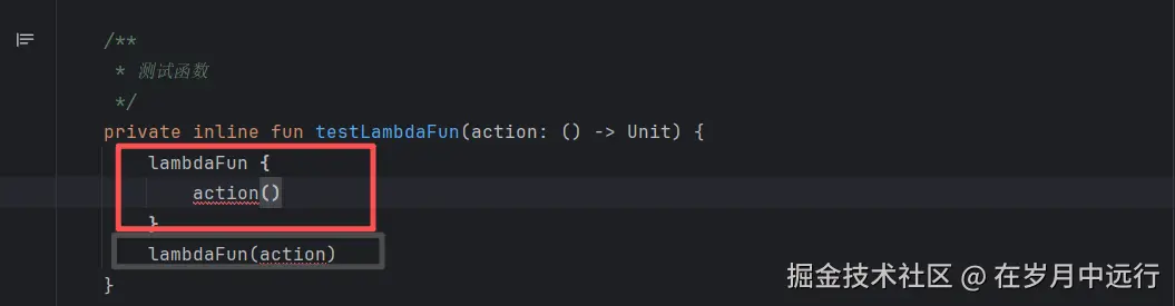 2处这里我们使用lambda表达式,在表达式内调用action()也就是其invoke函数,而不是把action这个函数类型参数进行传递,