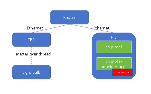 Run OTA Provider application with matter.ota replaced with the path to the Matter OTA image which you wish to provide to the Matter device. Note that the Matter OTA image is, by default, generated in the example's build directory: