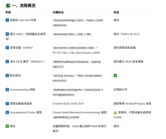 | On-network 配网 | chip-tool pairing onnetwork | 设备已在同一 IP 网络中(已拿到 IP) | 通过 IP(TCP/UDP)直接与设备建立安全会话。 |