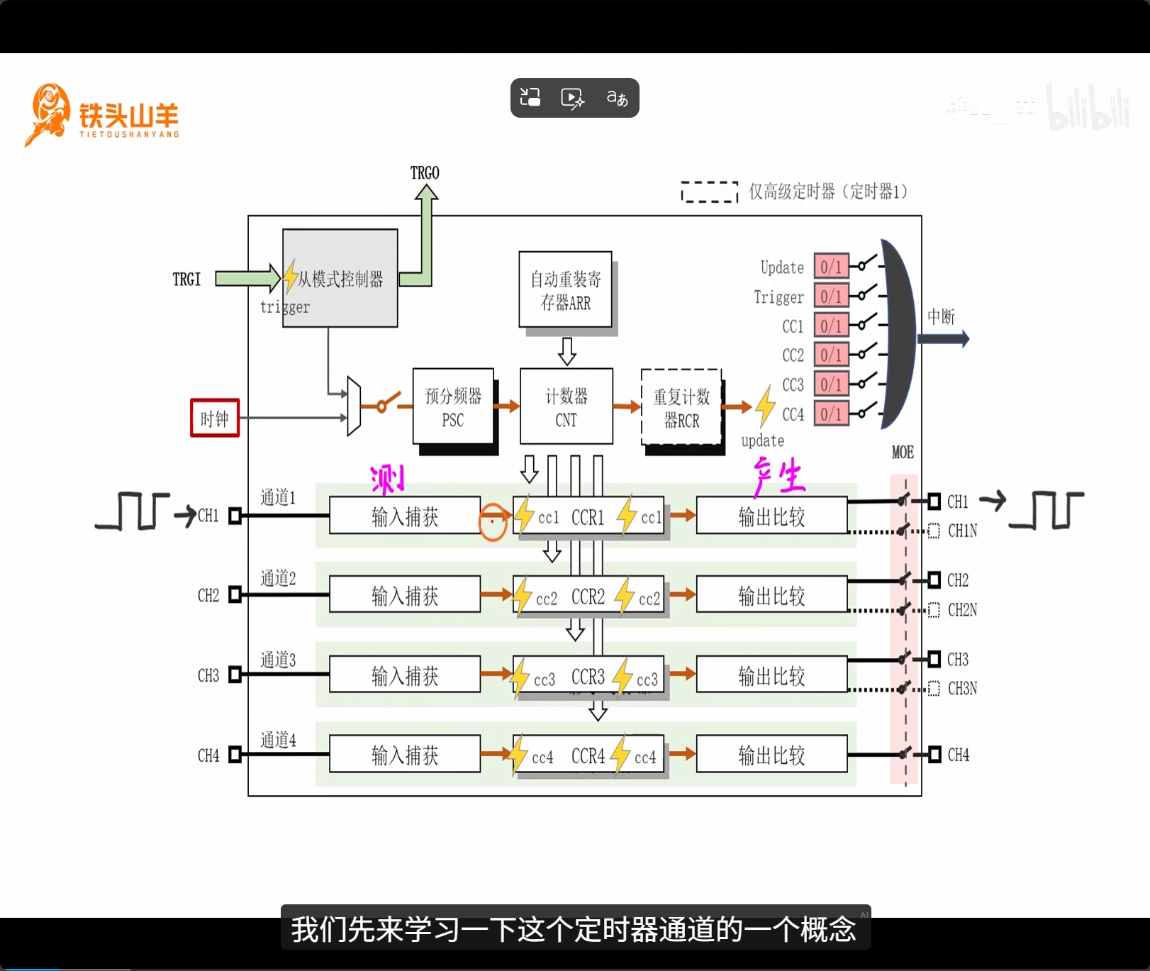 上图下方为定时器的四个通道,四个通道结构基本一样。