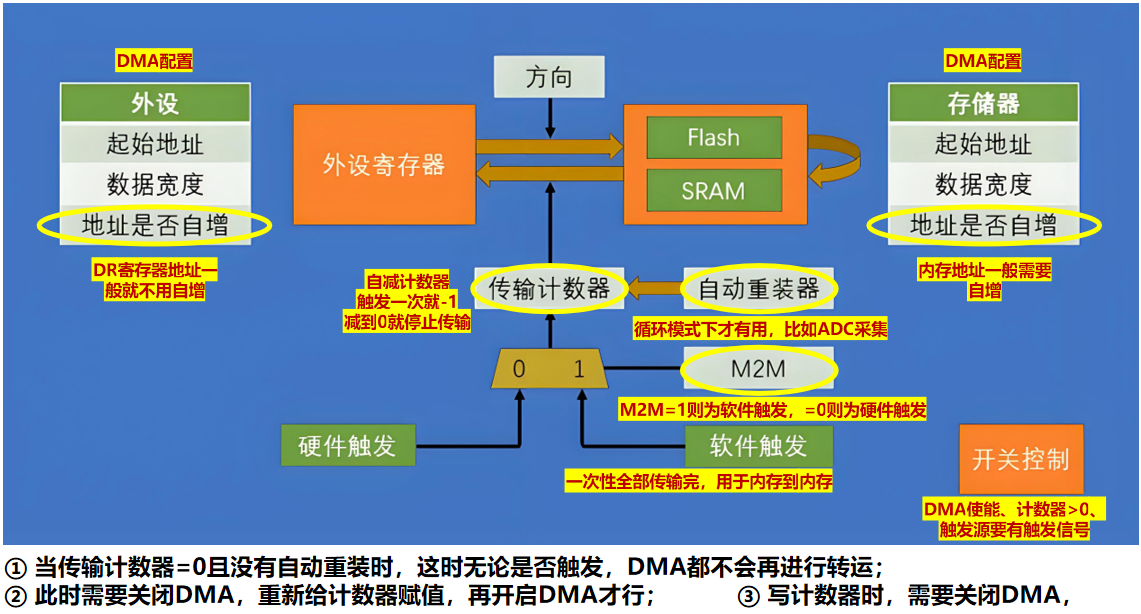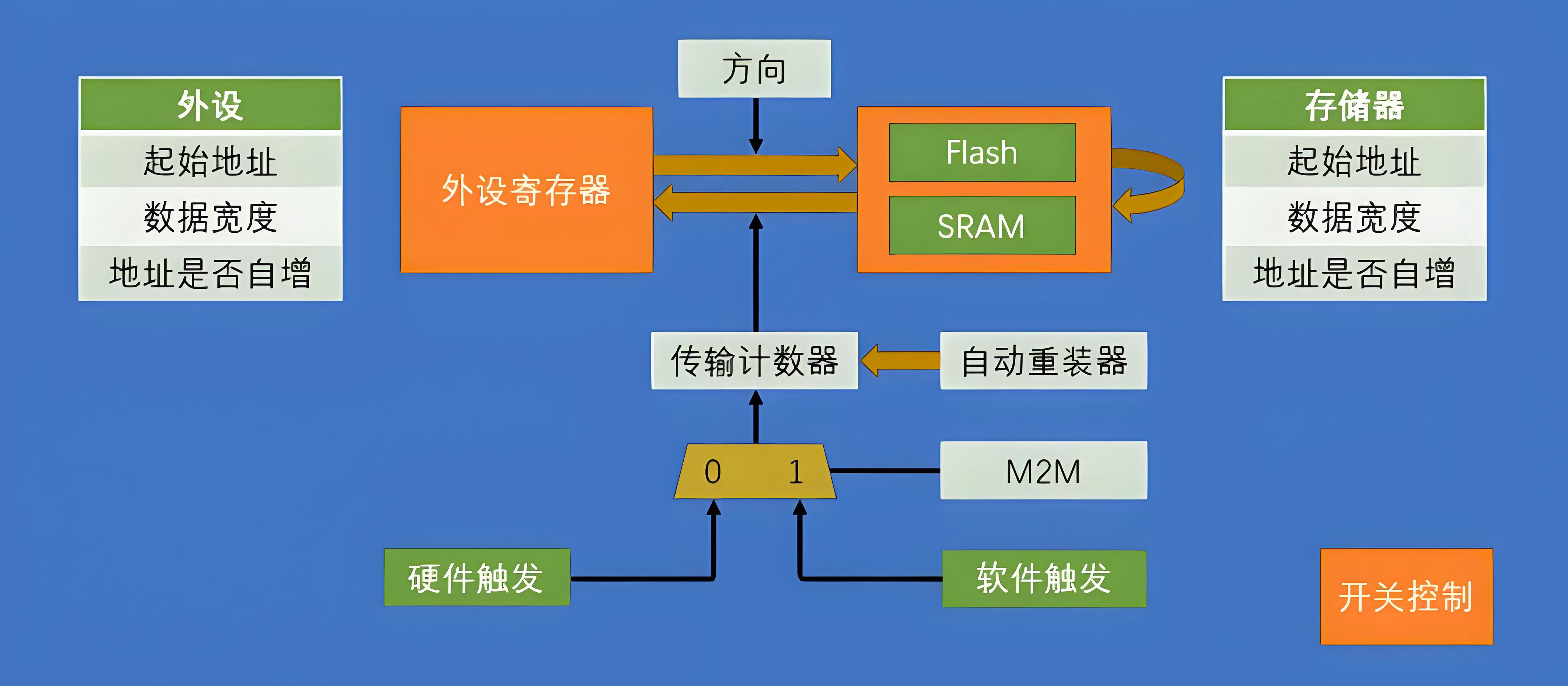 | 典型方向 | Memory ↔ Memory | Peripheral ↔ Memory |