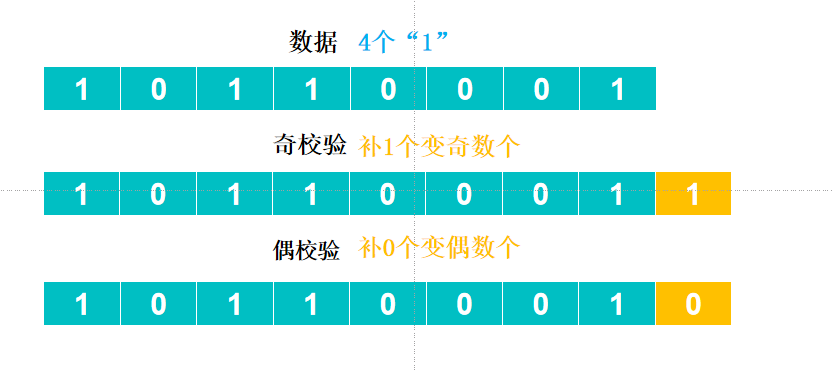 简单来说就是数据位+校验位中1的个数要保持为奇数(奇校验)或偶数(偶校验)。