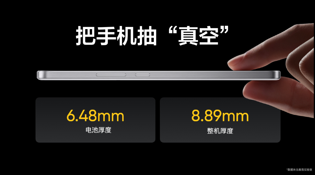 当然,随着技术的进步,电池容量和手机轻薄程度之间的负相关正逐渐缩小:荣耀WIN机身厚度为8.3mm,比iPhone17ProMax(231g/8.75mm)还要轻薄,这事实上打破了"大电池=厚重"的固有印象。而真我此前已展示过的15000mAh概念机,采用迷你钻石结构与超高压厚实极片工艺,在塞进超大电池的同时,厚度控制在8.89mm,也证明了手机厂商在续航和轻薄化上实现了一定程度的技术突破。