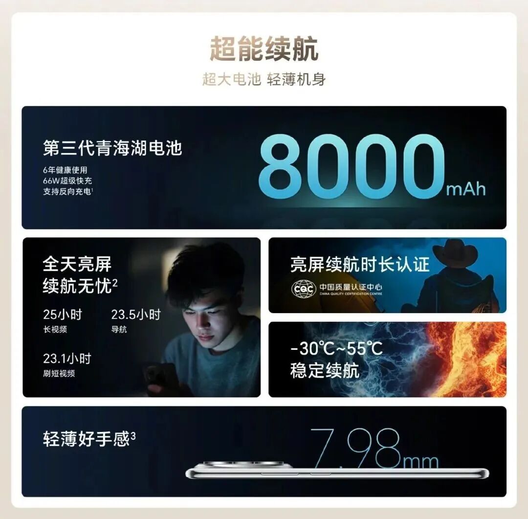 图/荣耀Power配备了8000mAh的第三代青海湖电池