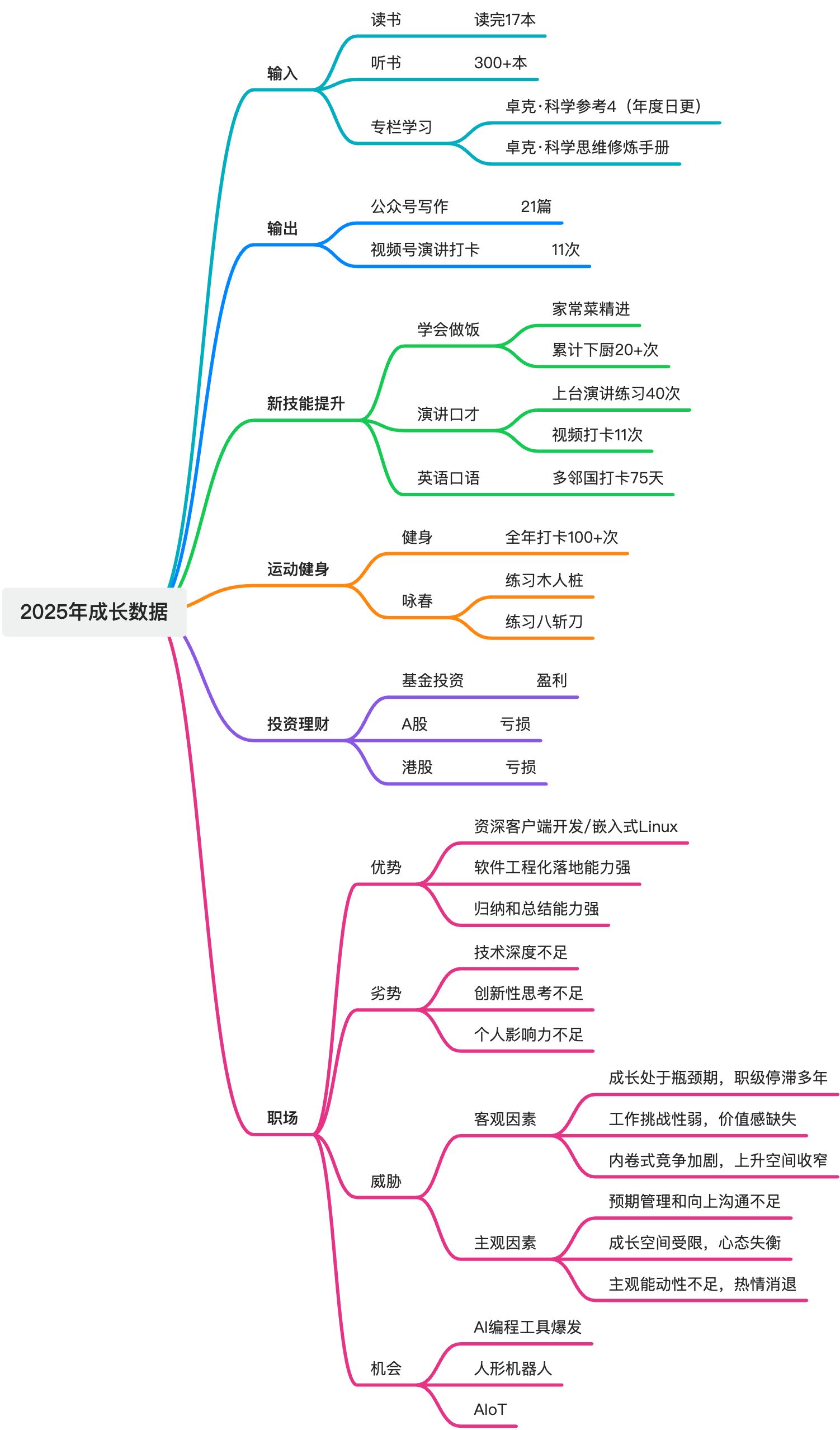 2025年目标主要围绕读书、写作、演讲口才、运动健康、理财投资等维度进行。