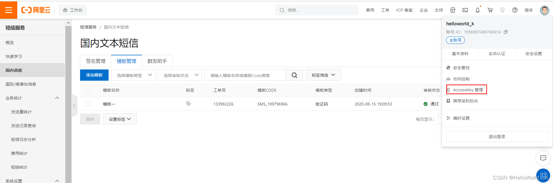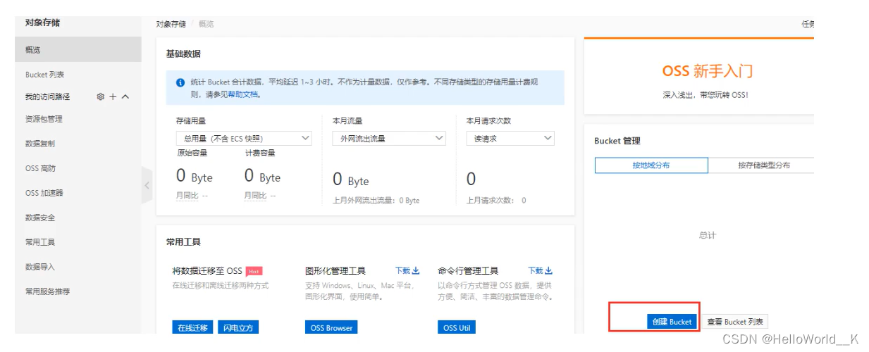 阿里云颁发ID与秘钥,如果要使用OSS对象存储,要使用OSS许可证,首先需要创建Bucket