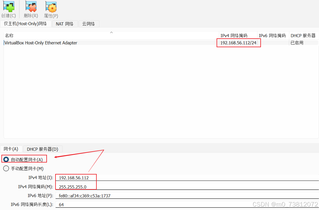 随后将网络配置为192.168.56.0/24网段的IP地址:
