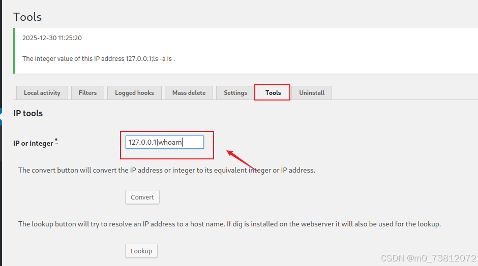 发现在tools页面,存在一个命令执行的框:(具体可以看我的CTF命令执行部分)