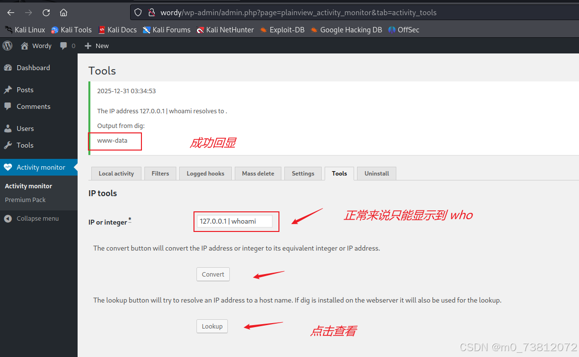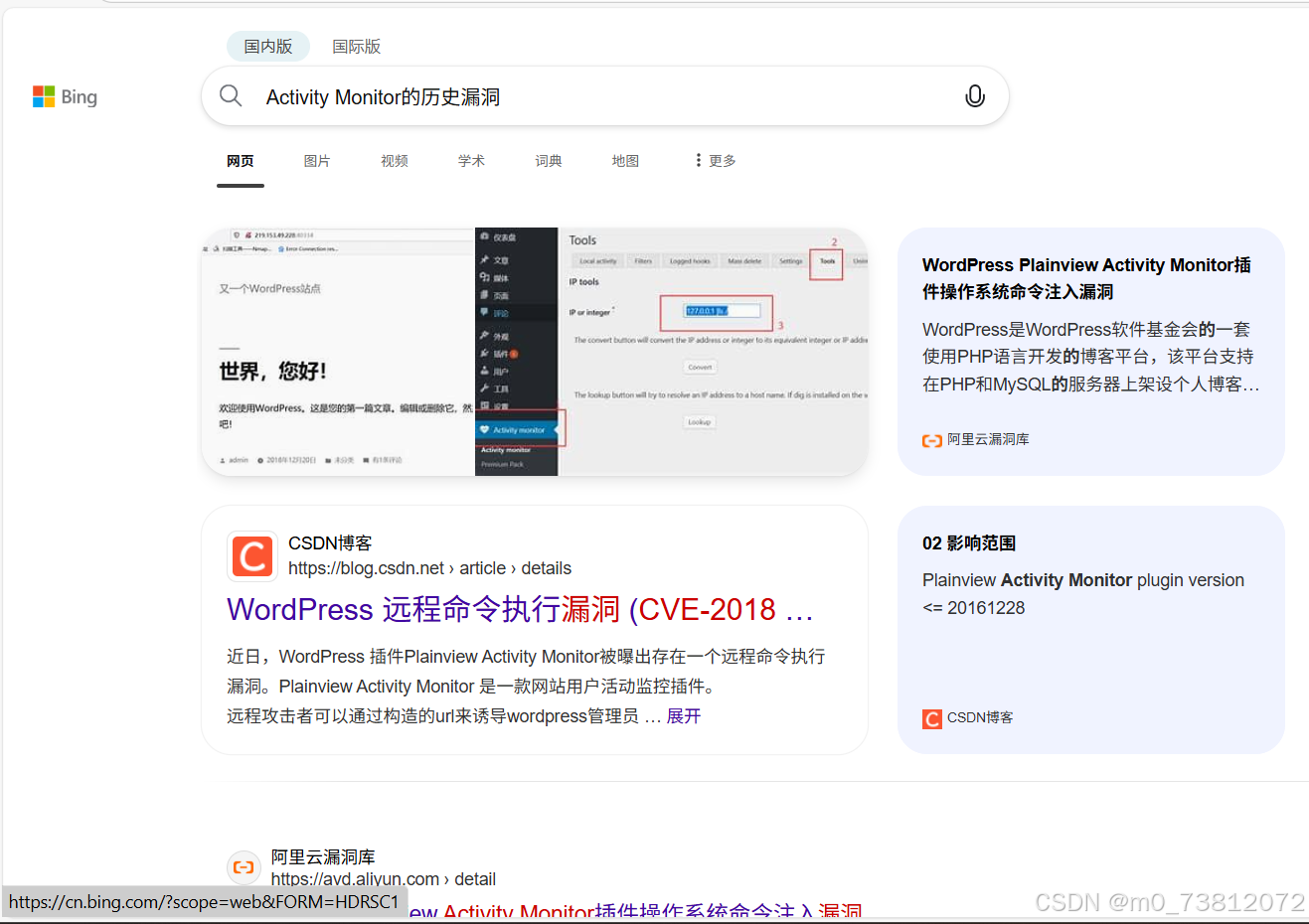 随后发现后台除了一些用户以及评论外,还下载了两个插件,就去网上查找关键词:Activity Monitor的历史漏洞