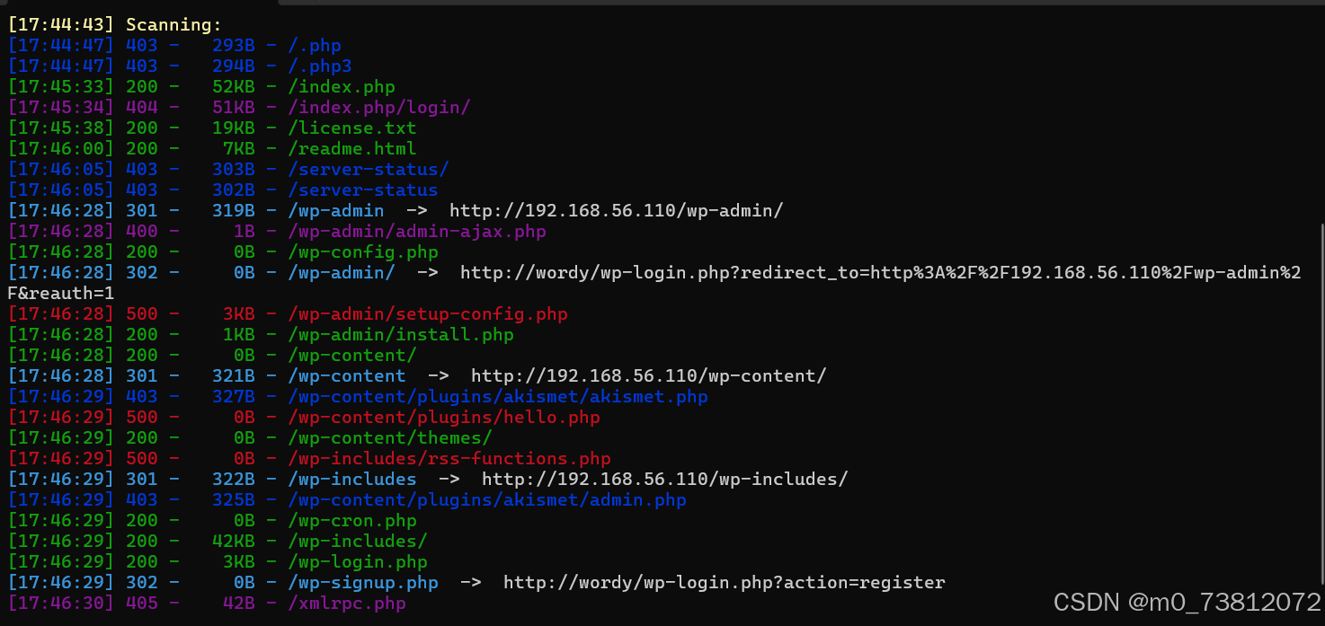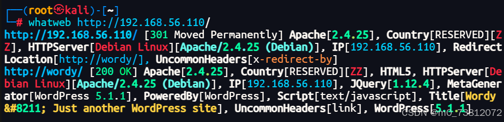 http://192.168.56.110/ → 301 → RedirectLocation[http://wordy/]
