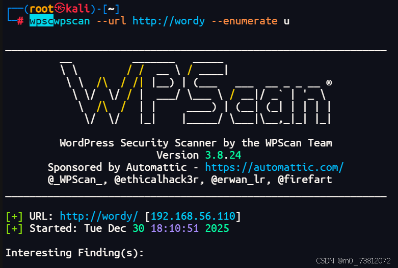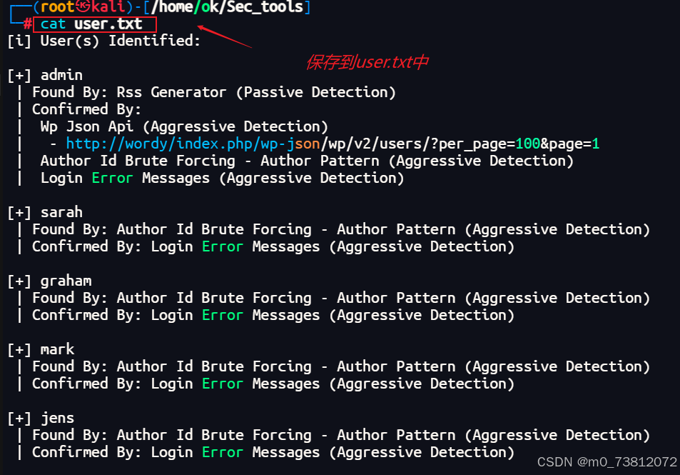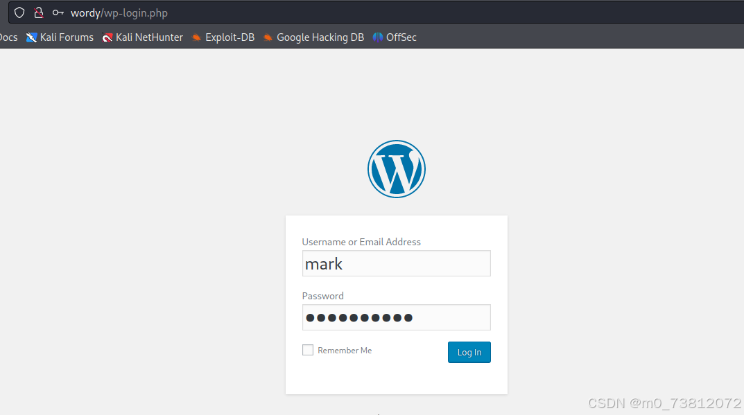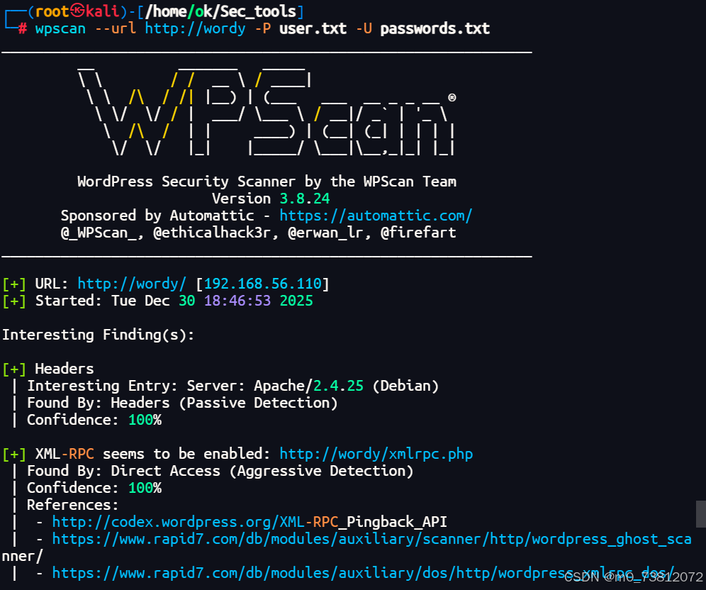 (2)使用密码本爆破:wpscan --url http://wordy -P user.txt -U password.txt