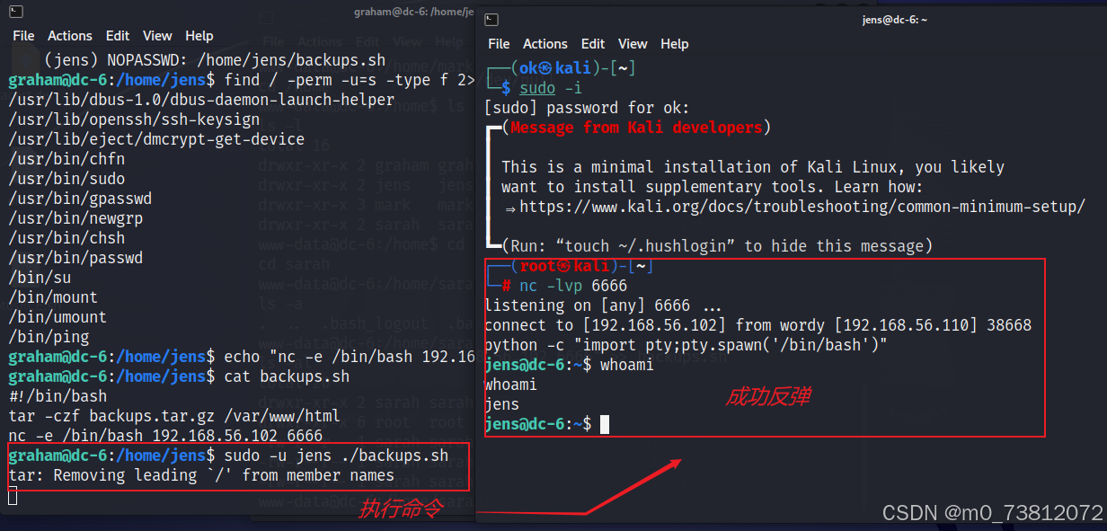所以我们可利用这个脚本来反弹一个jens用户的shell: