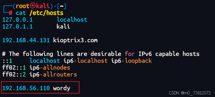 wordy被解析到了 192.168.44.146(kali地址)- 但真正想访问的是 192.168.56.110(目标地址)
