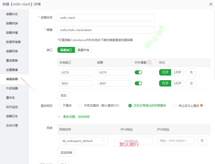 注意环境变量的新密码,这里修改后就是你链接的密码,上面的6378就是链接端口,注意一旦创建就不能再修改,如果修改,就会导致数据丢失