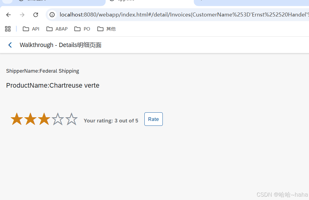 - 创建控件ProductRating :Control.extend("sap.ui5.walkthrough.control.ProductRating")