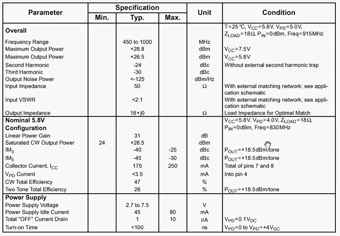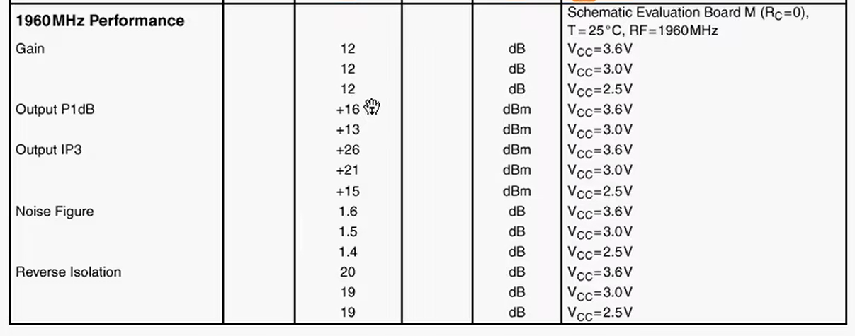 所以你可以看出,这款放大器需要外部额外的匹配网络 。这是你必须知道的。