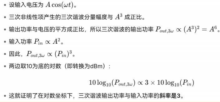 - 主信号从POIP3P_{\text{OIP3}}POIP3到PoutP_{\text{out}}Pout下降了ΔP\Delta PΔP