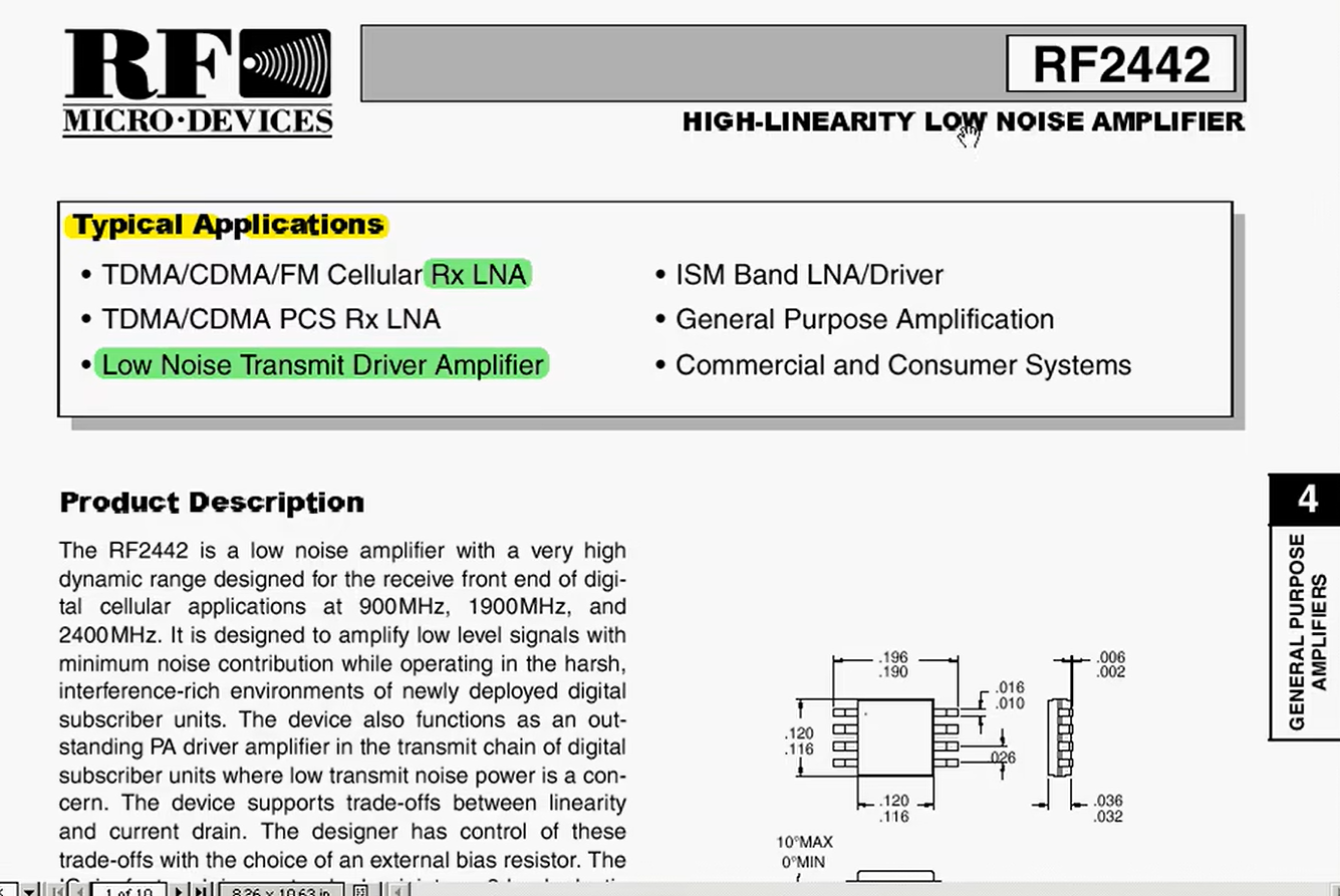 接下来,让我们以F2442这款射频低噪声放大器为例,先来看其规格书 的具体内容。