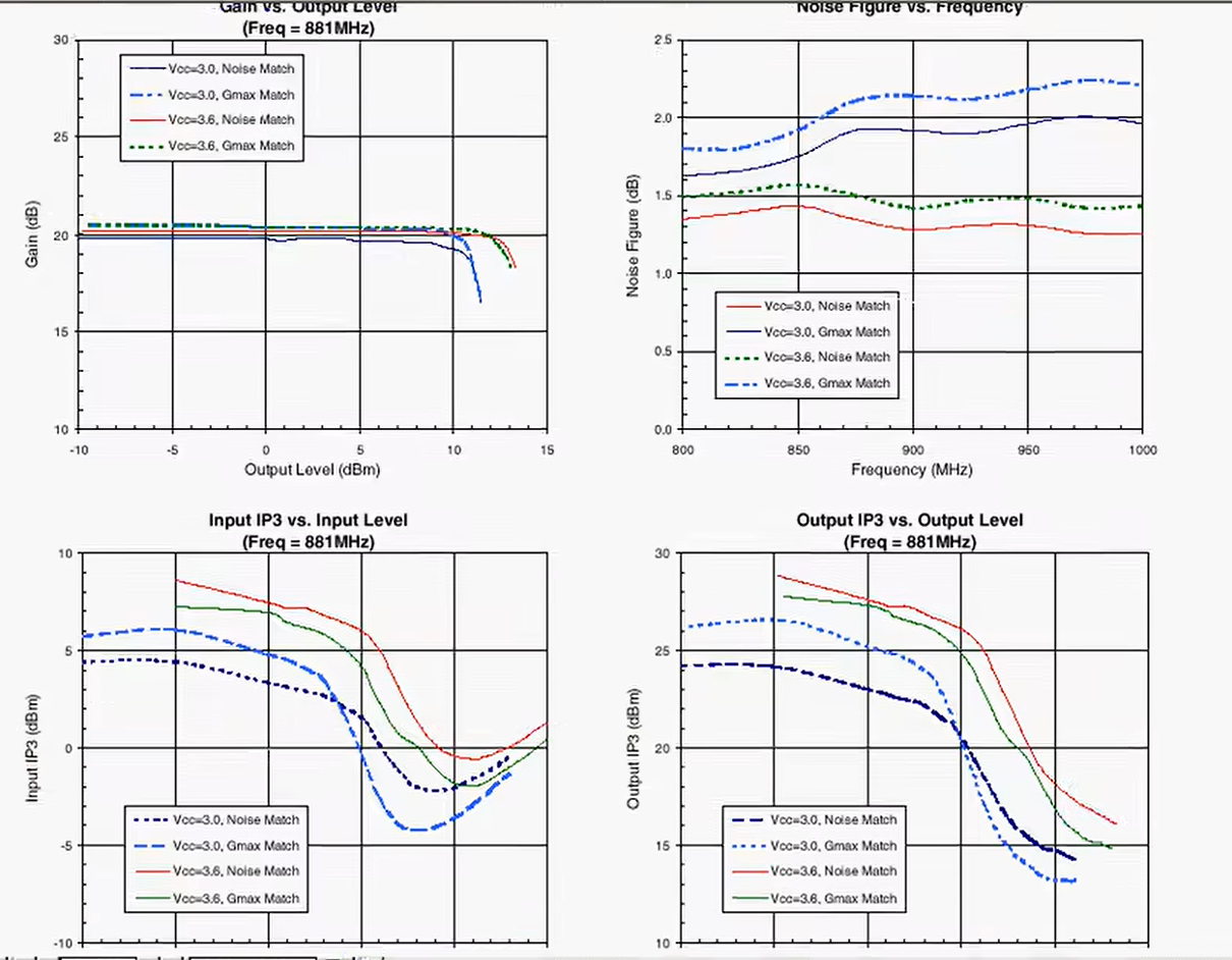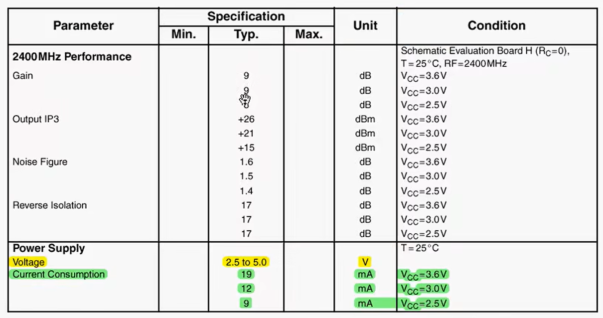 - 电压:例如在2.4GHz时,增益可能已经掉到10 dB以下了。