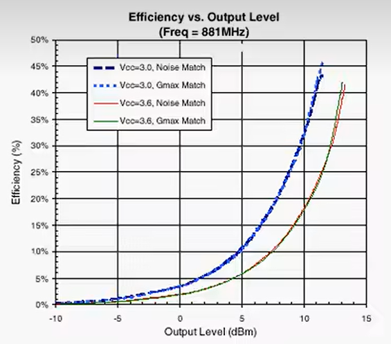 PAE完全取决于晶体管的偏置(Bias),即它工作在A类、AB类、B类还是C类。电子学课本说A类最大效率50%,但那是理论值,没考虑输入功率和实际器件的损耗。在实际数据手册中,能做到40%几的PAE已经非常不错了。