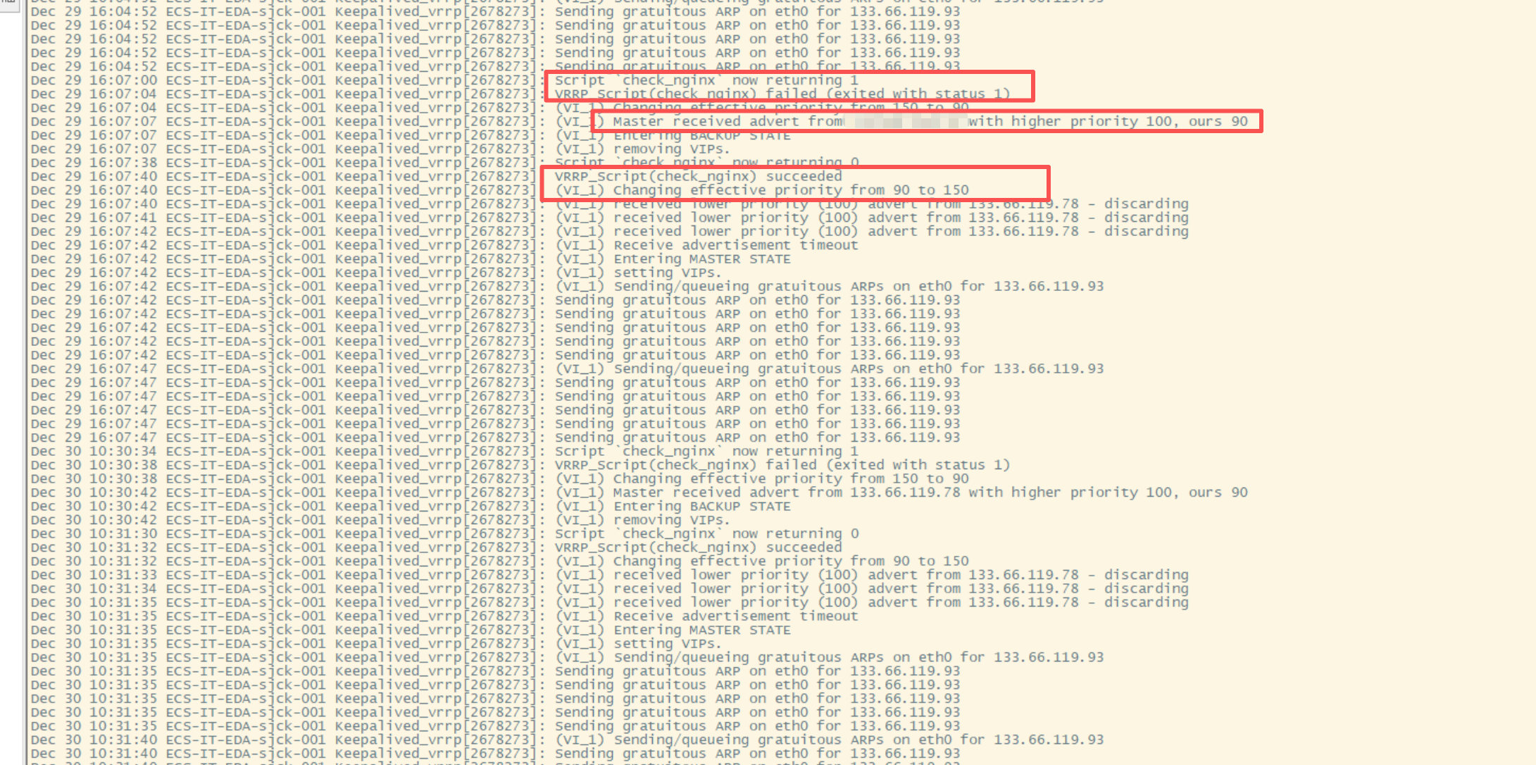 sudo grep -i "vrrp\|received advertisement\|MASTER\|BACKUP" /var/log/messages