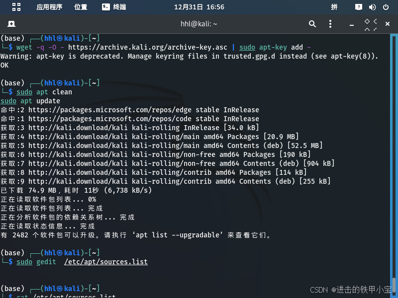 改为:deb http://http.kali.org/kali kali-rolling main non-free contrib