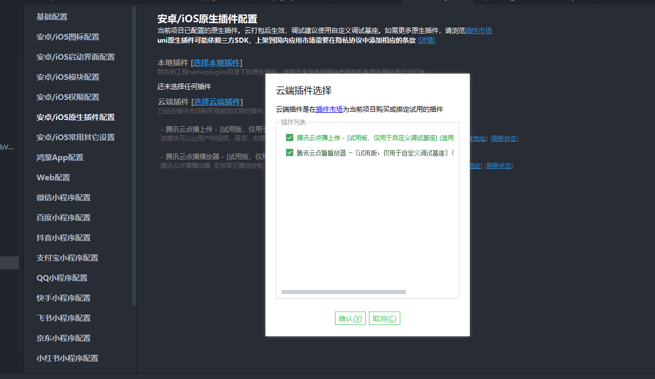 去manifest.json的原生插件配置导入