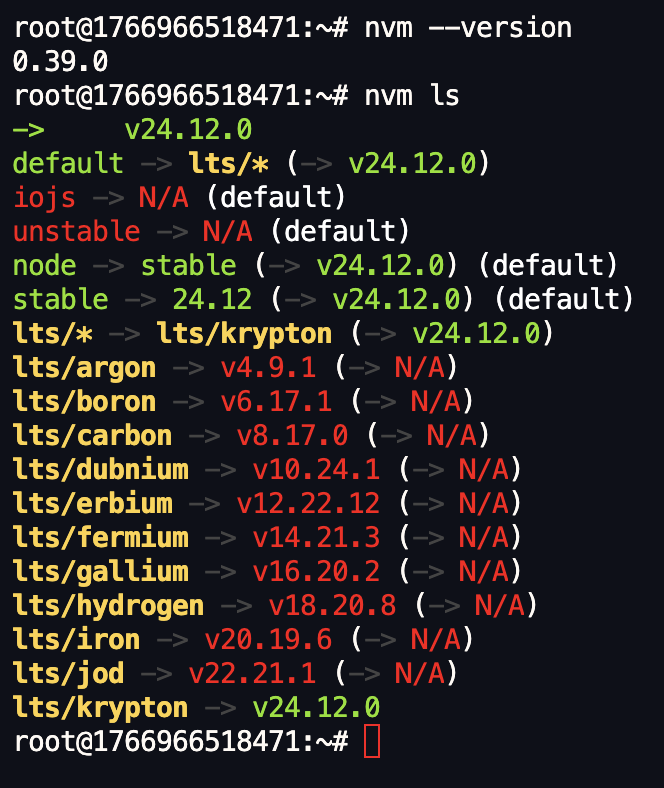 # 安装最新的 LTS 版本(推荐) 这里是 v24.12.0