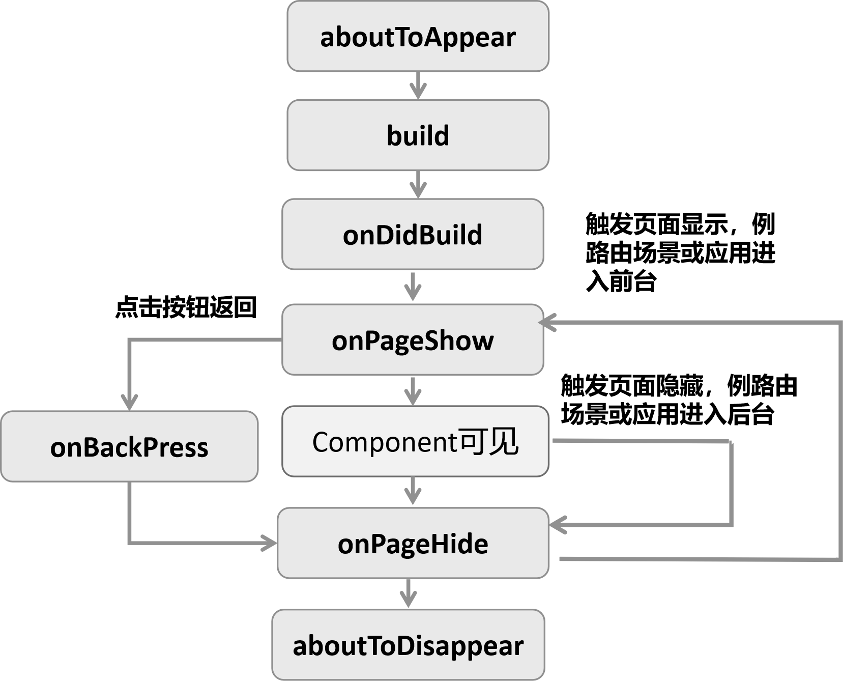 页面是基于@Component装饰的ArkUI组件。其生命周期由装饰器@Entry、@Component以及一系列生命周期函数来管理。其生命周期由视图栈相关。核心的生命周期方法如下表所示: