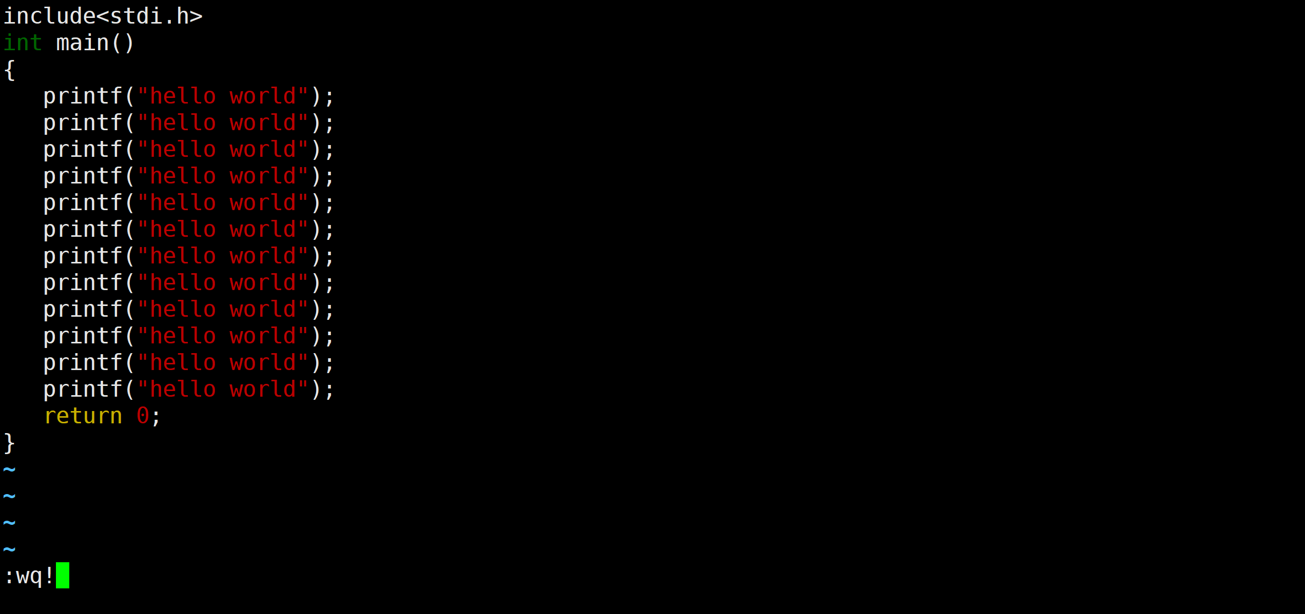 在这里输入wq!就可以直接保存退出了
