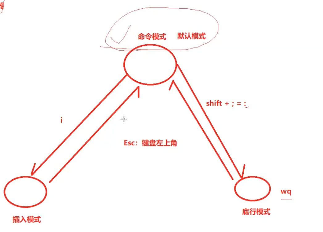 如果想从插入模式回到命令模式点esc就可以回到命令模式