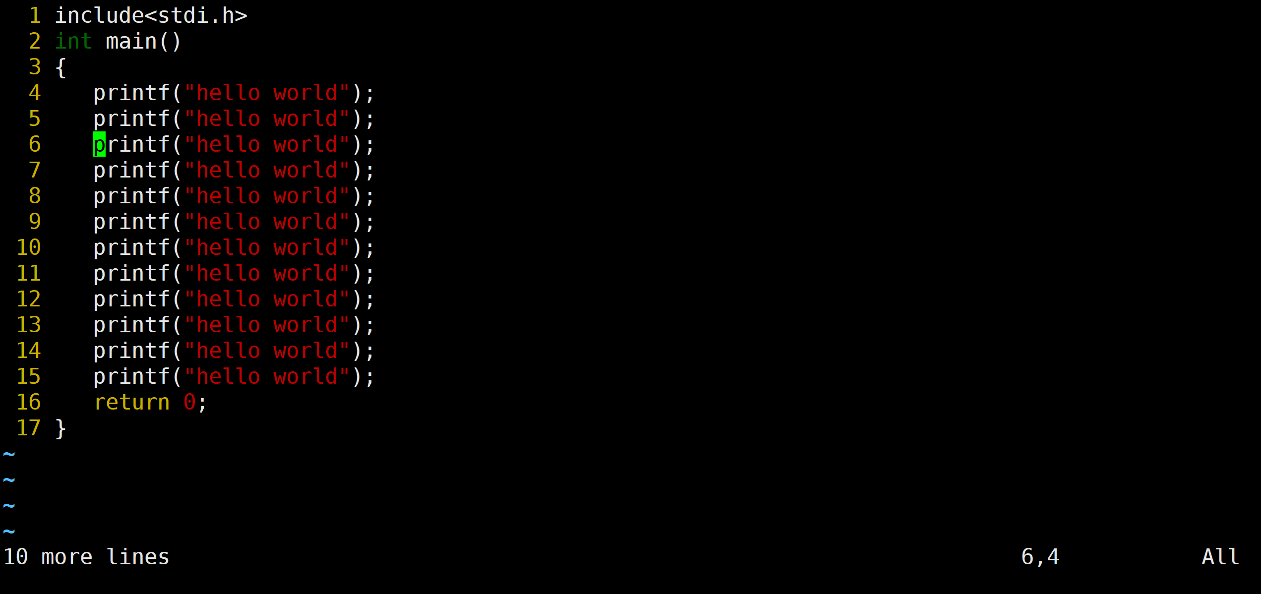 10 然后再按p就可以直接粘贴10次