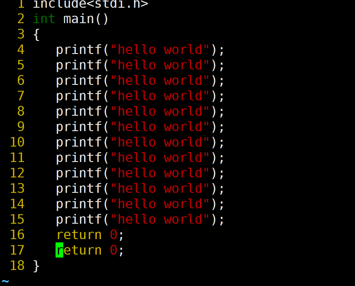 如果想直接回到文件的结尾就可以直接shitf+g就可以直接来到结尾