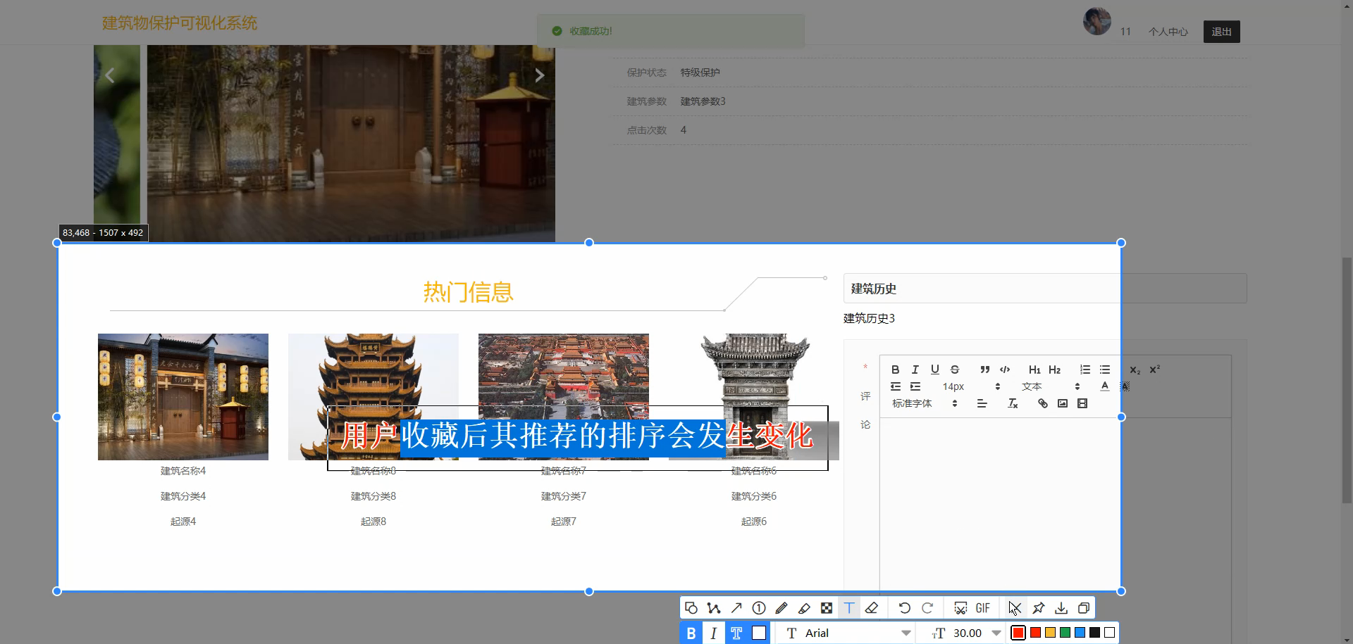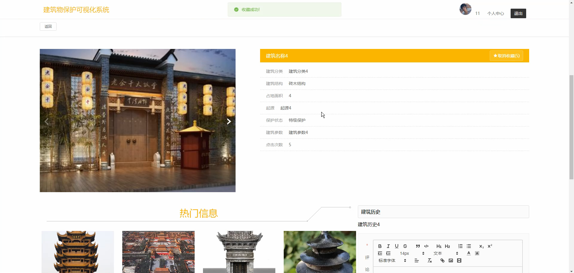 - 社会意义:系统通过数字化手段延长建筑"信息生命周期",减少因管理不当导致的保护延误,助力文化遗产活态传承,符合"文化自信"与"数字化中国"发展需求。