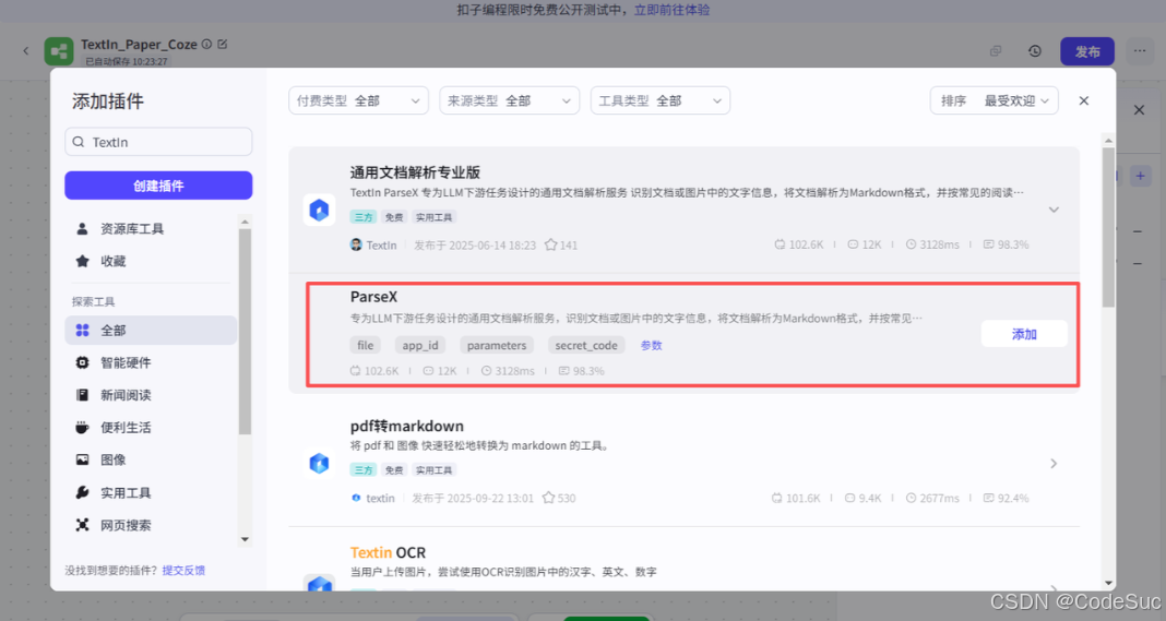 1. 解析节点:TextIn 通用文档解析 API