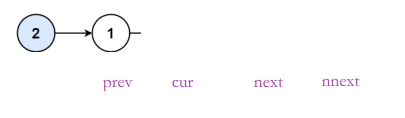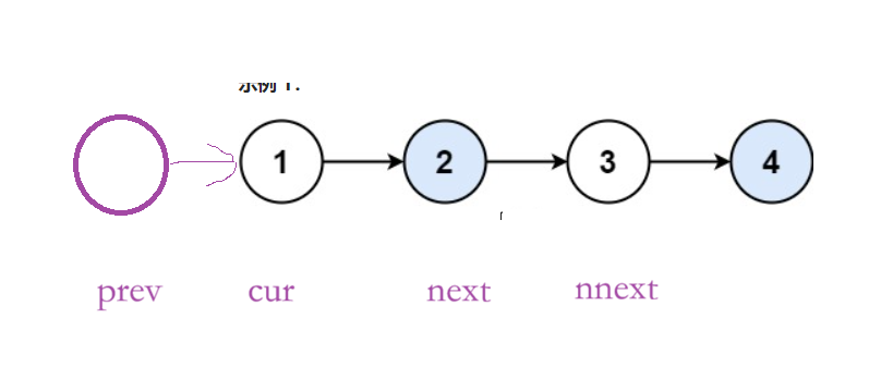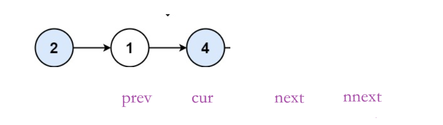 prev = cur;//开始更新 cur 、prev 、 next 、nnext