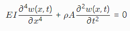 悬臂梁的自由振动问题,基于欧拉-伯努利梁理论,考虑四阶空间导数的偏微分方程: