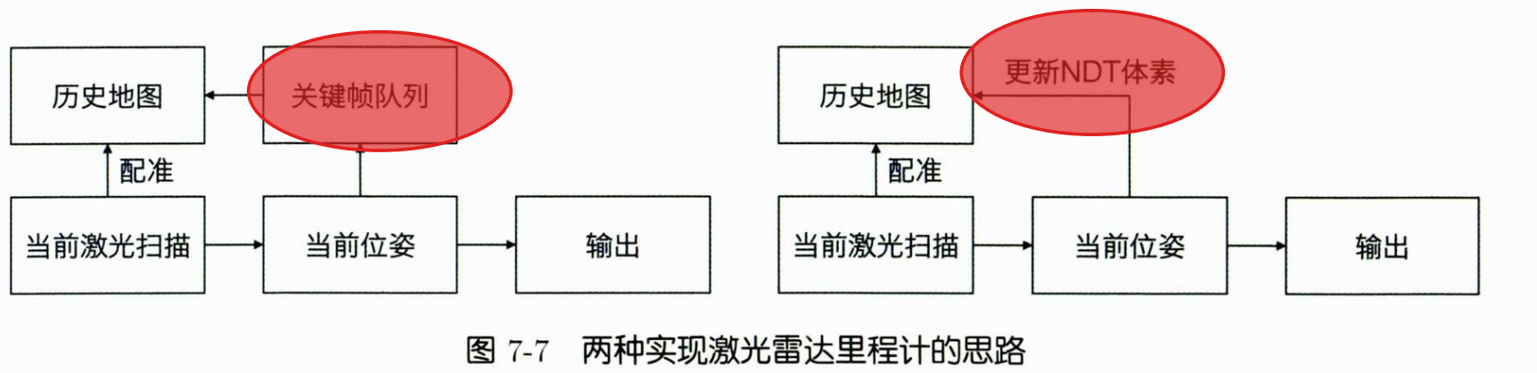 也可不必把过去的点云拼在一起形成局部地图,而是把配准好的点云更新到NDT的每个体素内部,更新它们的高斯分布情况,再做下一步的配准。这种思路被称为增量式NDT。