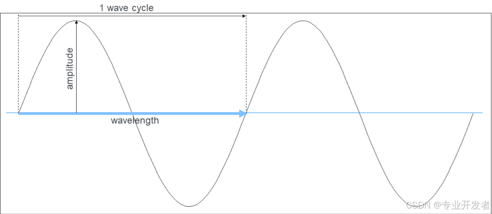 无线电是一种模拟物理现象,物理学家通常将无线电信号建模为波的形式。无线电波具有电磁能量,包含振幅、波长、频率等一系列基本属性(图 3、图 4 展示了这些概念)。如前所述,调制技术利用波的特性来传递信息:它通过改变波的某些属性来编码数据,这类技术被称为调制方案。不同方案的原理各异:有的利用信号振幅的变化,有的通过无线电相位编码信息,还有的借助频率变化实现编码。