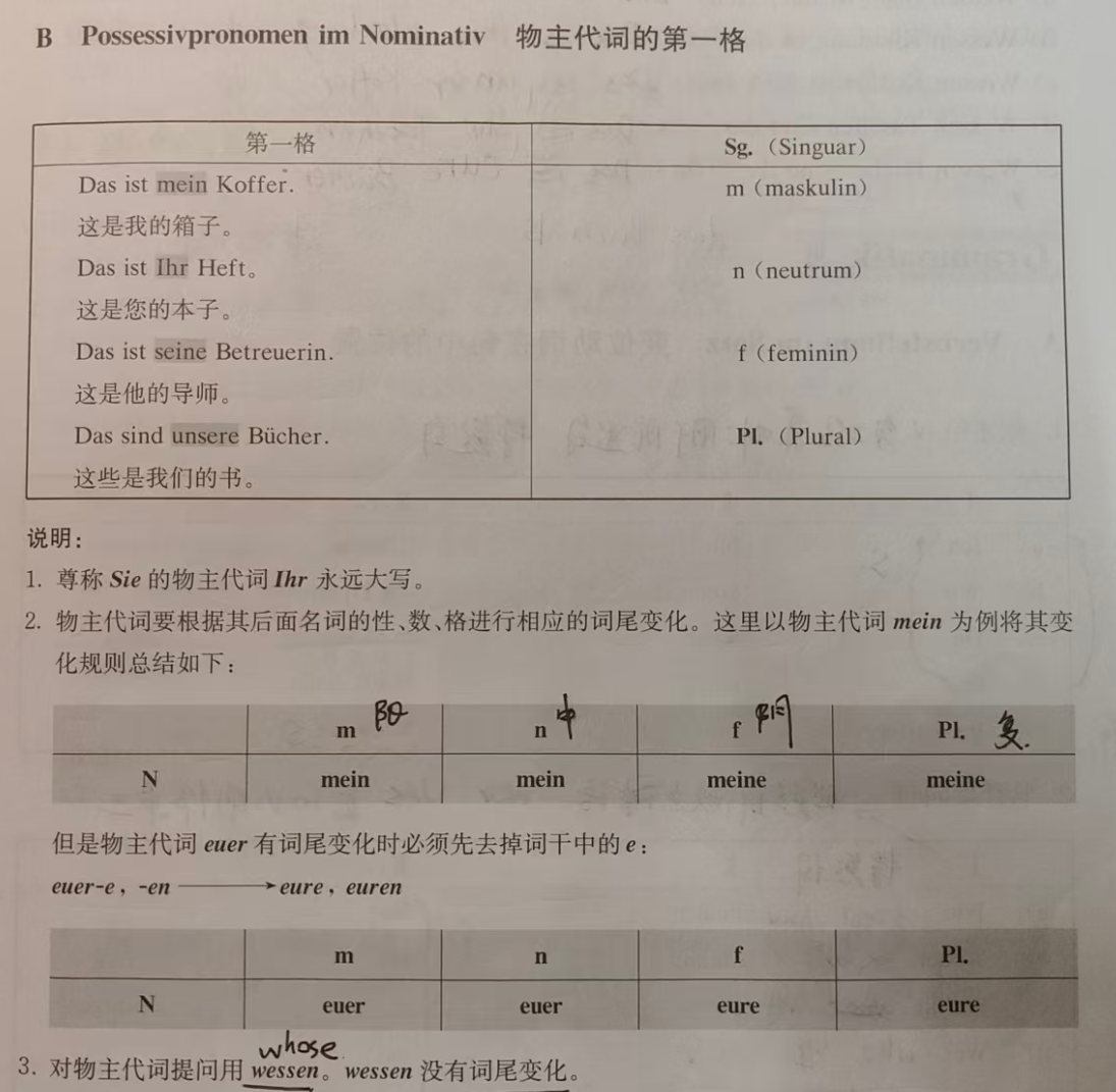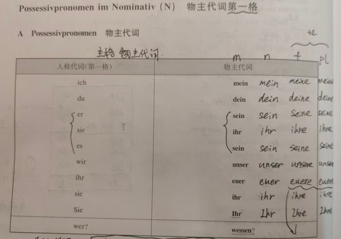 | ich | mein | unser | my / our |
