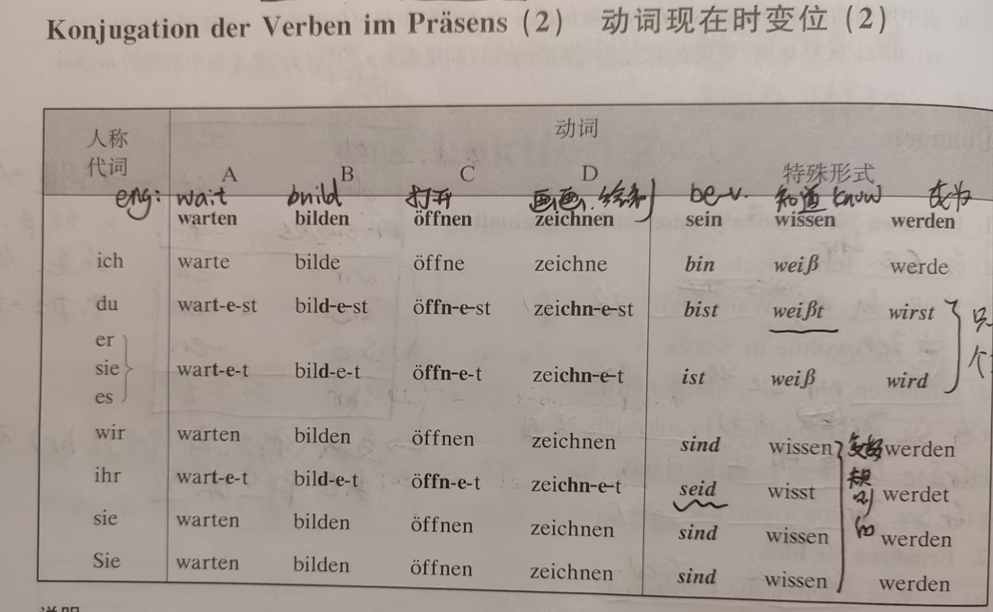 | wissen | to know | weiß | weißt | weiß | wissen | wisst |