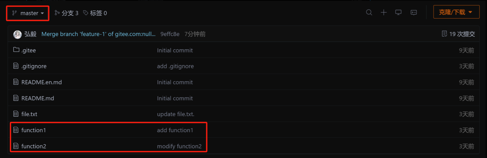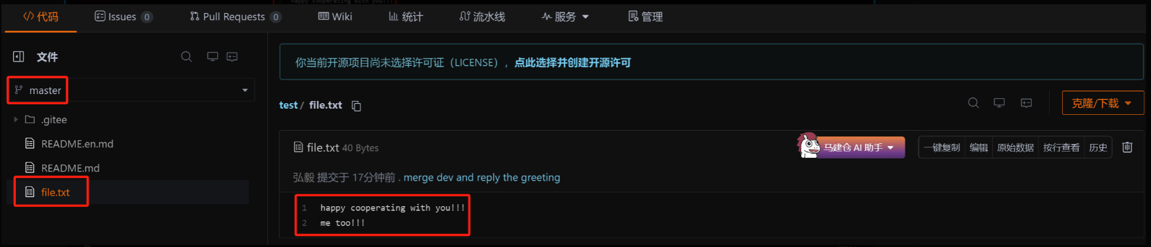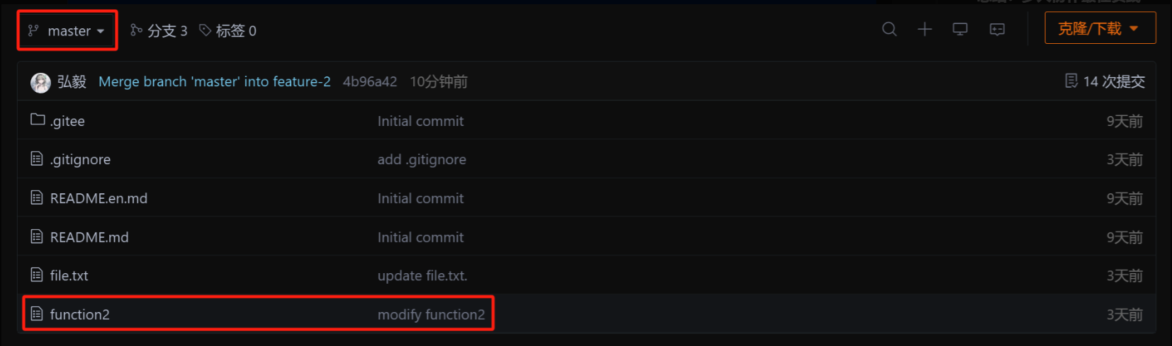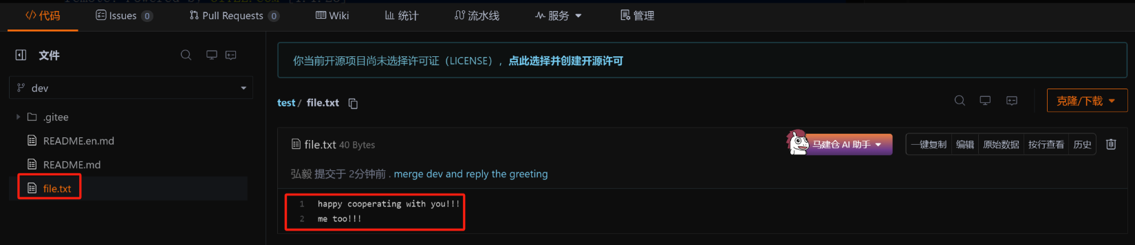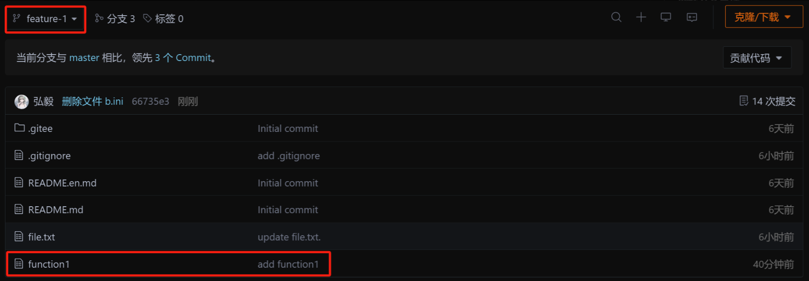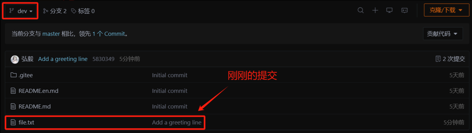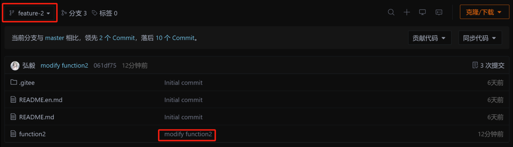 此时,我们看到远端的 Gitee已经能看到我们的新提交了