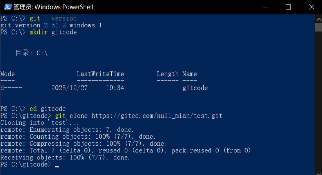 申请 Gitee账号,将远端信息 clone到本地,以及推送和拉取