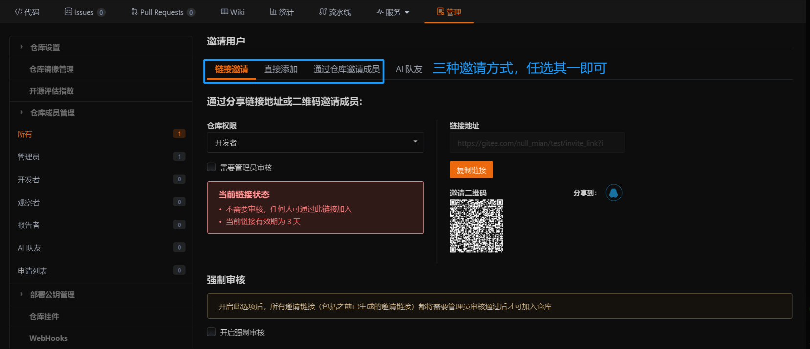 要进行协同开发,必须将其他开发者添加为项目成员并分配相应权限
