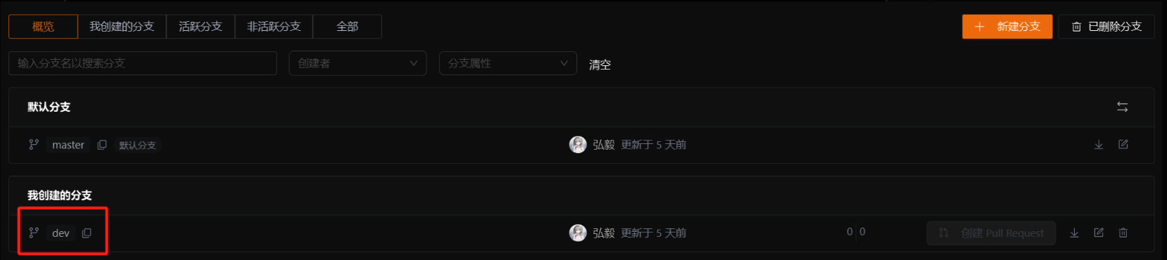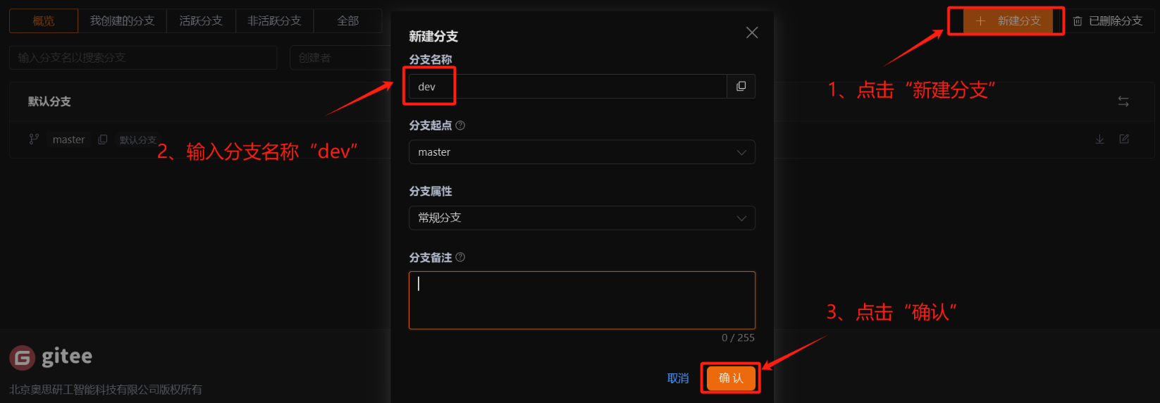 在Gitee创建dev分支